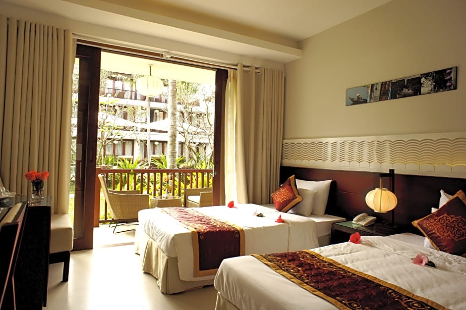 DOUBLE DELUXE RIVER VIEW is 269 square feet and includes a king-size bed 150-183 width plus balcony, satellite tv , cable tv, hairdryer, tea and coffee making facilities , safe, bathrobes, and slippers and is Wheelchair-accessible.